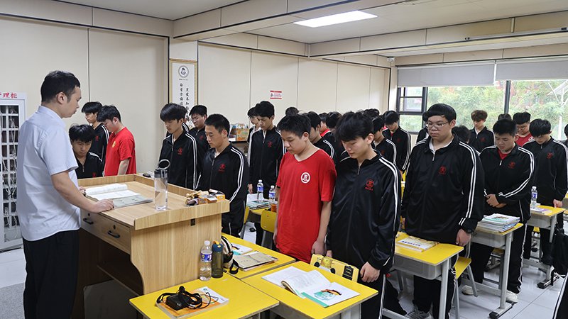 除觀影活動外,我校于上午10點整準時鳴響防空警報,全體師生肅立默哀;校園電子屏全天循環播放紀念標語,營造莊重濃厚的愛國教育氛圍;晚自習期間,各班組織召開“九一八”主題班會,班主任通過史料講解、集體討論等方式,引導學生深化歷史認知。
