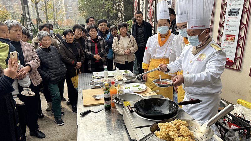 志愿服務活動兼顧“便民”與“樂民”:從細致周到的剪發、修眉、血壓測量,到美味的甜品,再到精彩紛呈的辣子雞丁、紅燒黃河大鯉魚等經典菜品教學與品鑒,每一項服務都讓居民們贊不絕口。